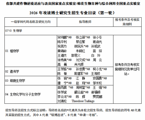 河南大学国家重点实验室2026年第一轮博士研究生招生采取“硕博连读”和“申请-考核”两种招生方式进行。