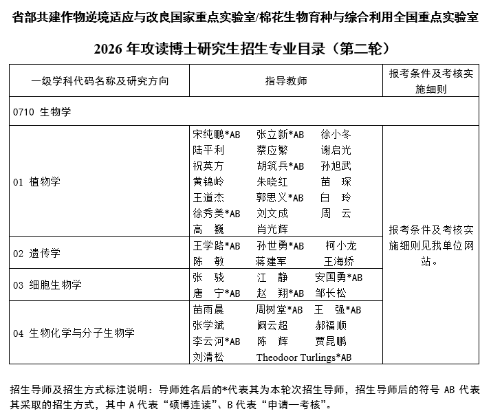 河南大学国家重点实验室2026年第二轮博士研究生招生采取“硕博连读”和“申请-考核”两种招生方式进行。